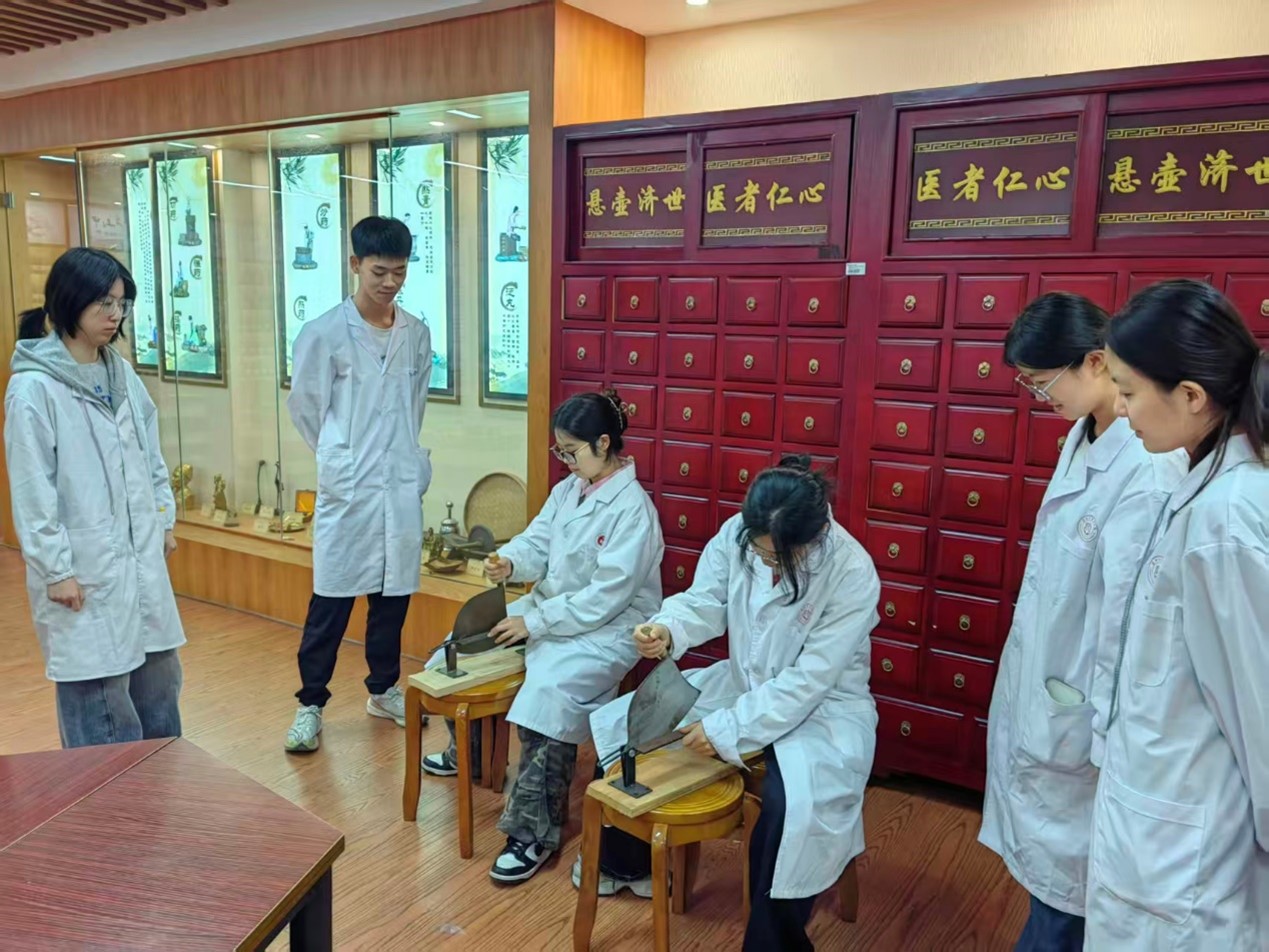 比赛中,我校队员分工协作,认真辨识药材性状,体验药材炮制的关键流程。通过亲手操作,同学们深入理解了中药炮制的规范与严谨,有效提升了专业实践技能。