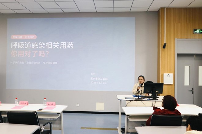 附属第二医院主管药师查丽则以《呼吸道感染相关用药,你用对了吗?》为题,从日常用药误区切入,深入浅出地讲解了感冒发烧等常见病症的用药原则、注意事项及药品说明书的正确阅读方法。她强调:“用药关键在于科学、精准,既不可滥用,也不可忽视。”朴实而深刻的话语引发师生共鸣。